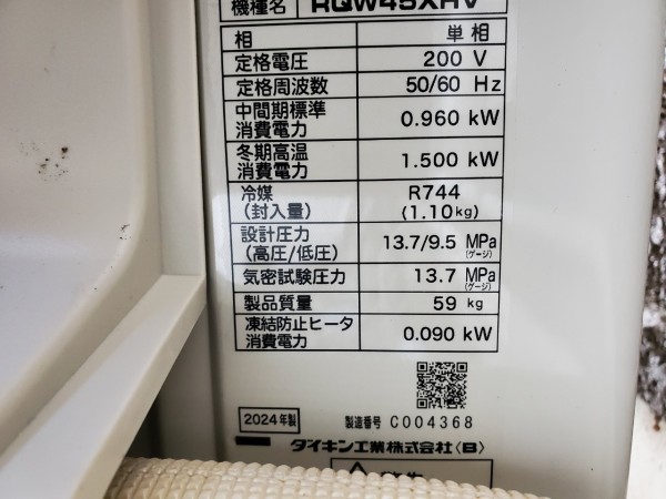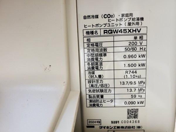 富士河口湖町本栖 ダイキン自然冷媒(CO2)・家庭用ヒートポンプ給湯機ヒートポンプユニットRQW45XHV エコキュート交換工事|山梨県のエコキュート専門交換工事店|山梨エコキュート交換ショップ補助金対応可能