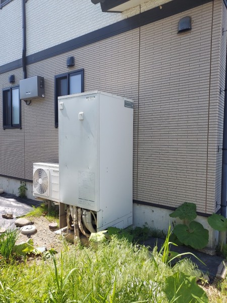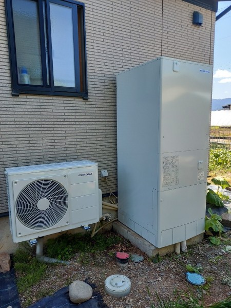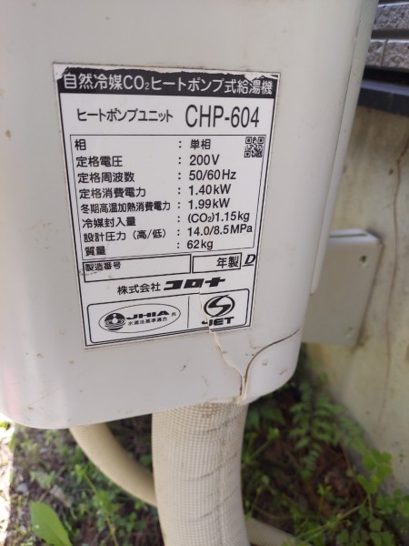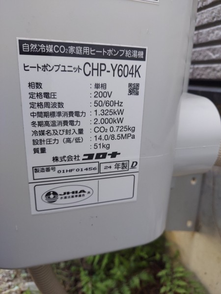 甲州市勝沼町藤井 コロナ自然冷媒CO2家庭用ヒートポンプ給湯機ヒートポンプユニットCHP-Y604K エコキュート交換工事