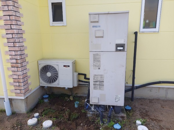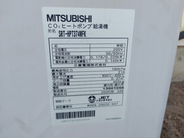 早川町湯島 三菱電機エコキュート→三菱電機自然冷媒CO2家庭用ヒートポンプ給湯機 貯湯ユニットSRT-STK376D エコキュート交換工事