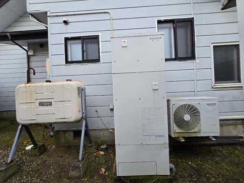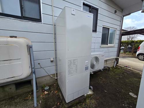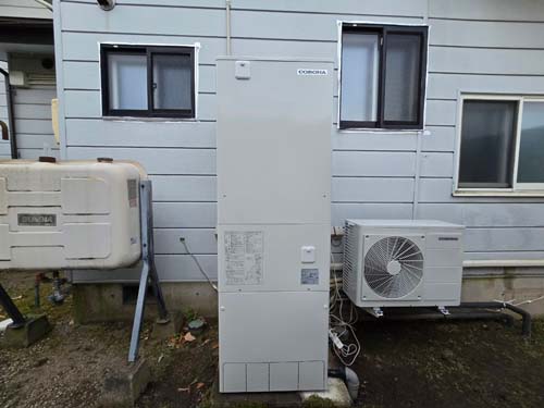 甲斐市万才 コロナエコキュート→コロナ自然冷媒CO2家庭用ヒートポンプ給湯機 ヒートポンプユニットCHP-DZ451K エコキュート交換工事