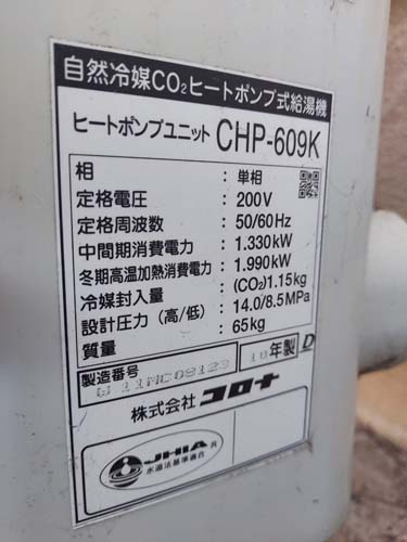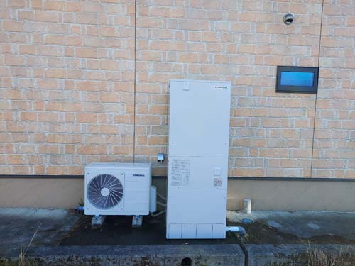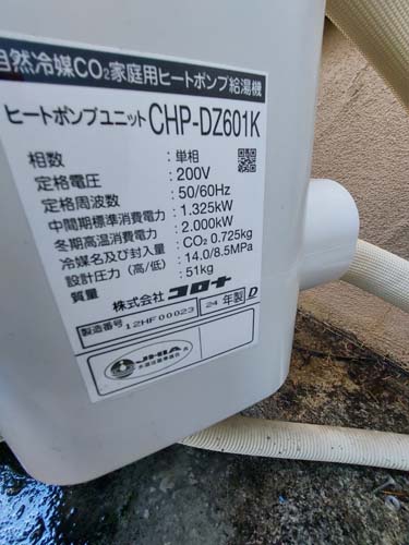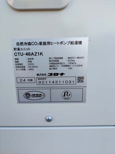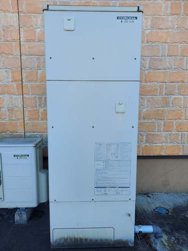 忍野村内野 コロナ自然冷媒CO2家庭用ヒートポンプ給湯機ヒートポンプユニットCHP-DZ601K、貯湯ユニットCTU-46AZ1K エコキュート交換工事