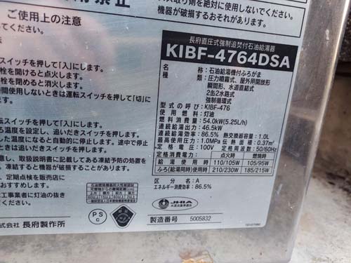 甲斐市天狗沢 長府製作所給湯器KIBF-4764DSA→コロナ自然冷媒CO2家庭用ヒートポンプ給湯機ヒートポンプユニットCHP-DZ601K エコキュート交換工事