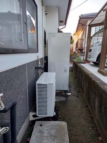 トップページ > 工事事例一覧 > 甲斐市天狗沢 コロナ自然冷媒CO2家庭用ヒートポンプ給湯機ヒートポンプユニットCHP-DZ601K エコキュート交換工事