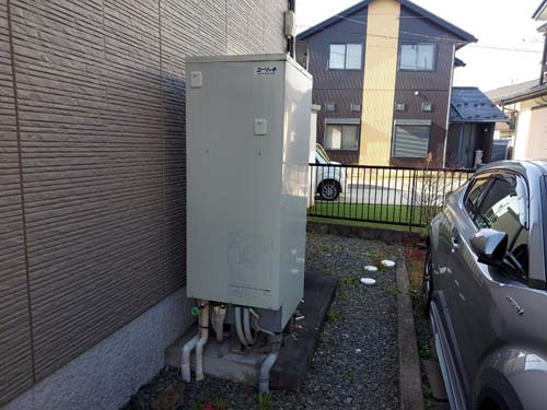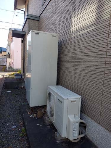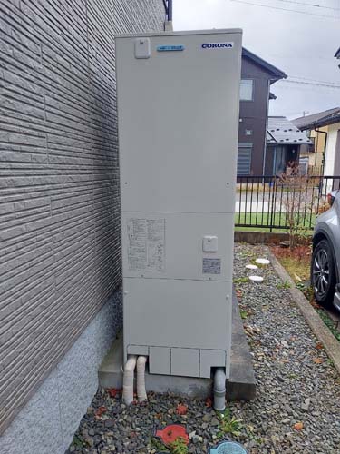 トップページ > 工事事例一覧 > 甲州市勝沼町藤井 コロナ自然冷媒CO2家庭用ヒートポンプ給湯機 ヒートポンプユニットCHP-DZ451K エコキュート交換工事