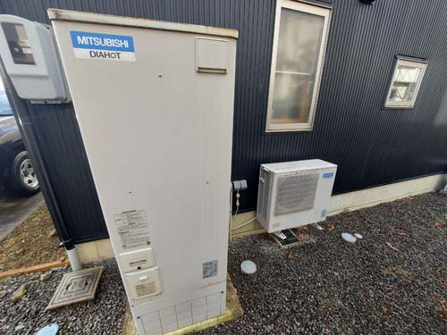 忍野村内野 三菱電機エコキュート→コロナ自然冷媒CO2家庭用ヒートポンプ給湯機 ヒートポンプユニットCHP-DZ451K エコキュート交換工事