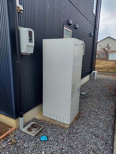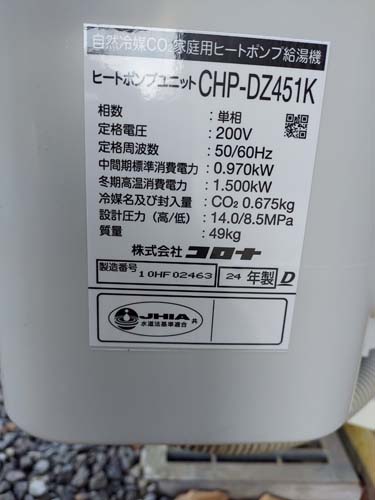 忍野村内野 コロナ自然冷媒CO2家庭用ヒートポンプ給湯機 ヒートポンプユニットCHP-DZ451K エコキュート交換工事
