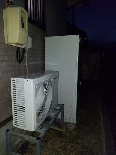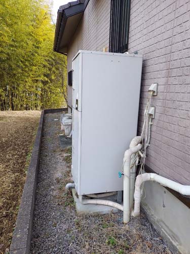 忍野村忍草 三菱電機エコキュート→コロナ自然冷媒CO2家庭用ヒートポンプ給湯機 ヒートポンプユニットCHP-DZ451K エコキュート交換工事