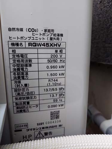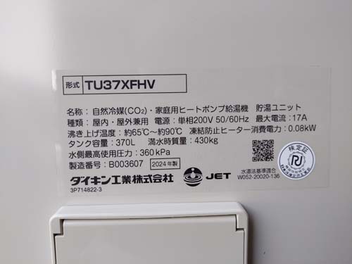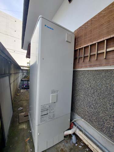甲州市勝沼町藤井 ダイキン工業自然冷媒CO2家庭用ヒートポンプ給湯機貯湯ユニットTU37XFHV、ヒートポンプユニットRQW45XHV エコキュート交換工事