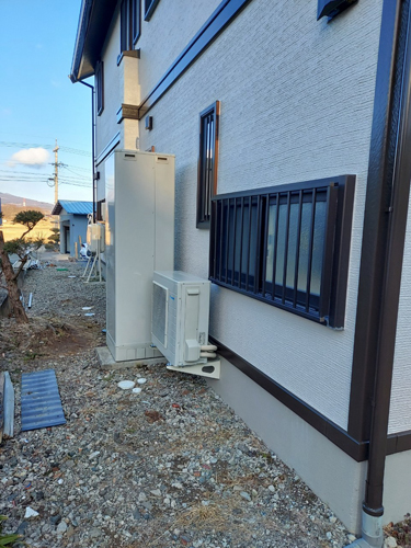 トップページ > 工事事例一覧 > 甲斐市万才 ダイキン自然冷媒CO2家庭用ヒートポンプユニットRQW60YHV エコキュート交換工事