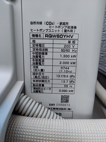 甲斐市万才 ダイキン自然冷媒CO2家庭用ヒートポンプユニットRQW60YHV エコキュート交換工事