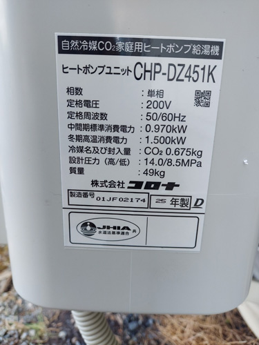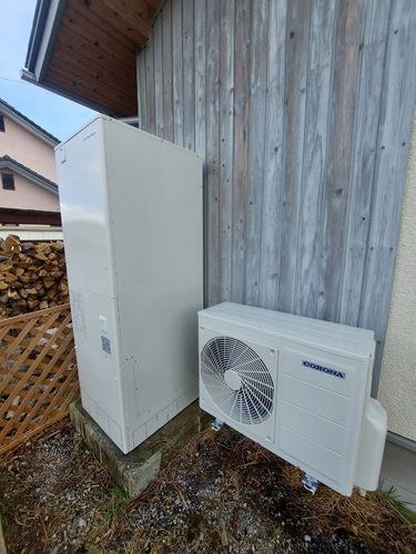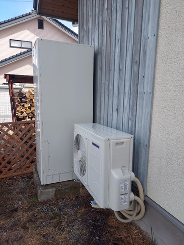 トップページ > 工事事例一覧 > 甲斐市上福沢 コロナ自然冷媒CO2家庭用ヒートポンプ給湯機貯湯ユニットCTU-37AZ1K、ヒートポンプユニットCHP-DZ451K エコキュート交換工事